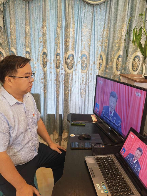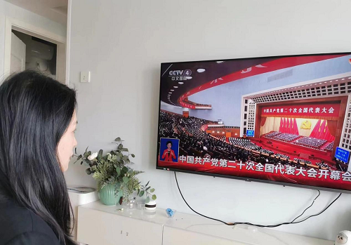 中諾通訊黨支部柏萍在家收看黨的二十大開幕式