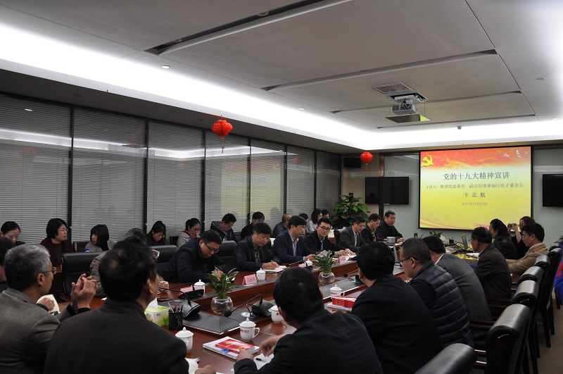 根據(jù)省電子信息集團(tuán)黨委統(tǒng)一安排,2017年12月12日下午,集團(tuán)黨委委員、副總經(jīng)理兼福日電子董事長卞志航到公司作黨的十九大精神宣講。福日電子黨委書記李震主持報(bào)告會(huì),公司機(jī)關(guān)支部全體黨員、本部助理以上管理人員以及成員企業(yè)、事業(yè)部副總以上領(lǐng)導(dǎo)共計(jì)40余人參會(huì)。