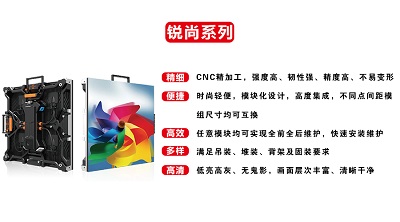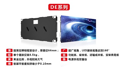 銳尚系列顯示屏每塊模組均擁有獨(dú)立主控芯片,能夠自動(dòng)讀取和記錄模組的工作數(shù)據(jù),同時(shí)具有錯(cuò)誤偵測和定位等功能。小間距DE系列顯示屏設(shè)計(jì)輕薄,有效減少屏體安裝空間。
