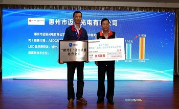 2018年4月18日,東江科技園“瞪羚匯”倍增計(jì)劃啟動(dòng)暨首批培育企業(yè)授牌儀式在惠州市舉辦,園區(qū)管委會(huì)領(lǐng)導(dǎo)及各相關(guān)部門負(fù)責(zé)人、園區(qū)企業(yè)主要負(fù)責(zé)人等約100多人參加本次活動(dòng)。福日電子成員企業(yè)惠州市邁銳光電有限公司等13家企業(yè)入選“瞪羚匯”倍增計(jì)劃培育企業(yè)。惠州邁銳常務(wù)副總經(jīng)理陳曉斌上臺(tái)領(lǐng)取了培育企業(yè)牌匾和培育經(jīng)費(fèi)支票。