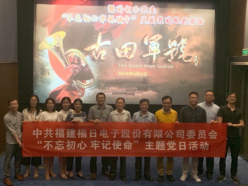 為持續(xù)推進(jìn)“不忘初心、牢記使命”主題教育,激發(fā)廣大黨員干部更好地“守初心、悟初心、踐初心”,2019年8月8日,福日電子黨委組織黨員干部觀看了革命歷史題材電影《古田軍號(hào)》。