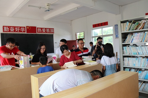 2019年8月22日,福日電子二級(jí)控股子公司廣東以諾通訊有限公司工會(huì)聯(lián)合東莞市大朗鎮(zhèn)團(tuán)委、志愿者協(xié)會(huì)赴河源市龍川縣田心鎮(zhèn)上寨小學(xué),援建由大朗鎮(zhèn)團(tuán)委發(fā)起的第16期“希望圖書室”公益項(xiàng)目。