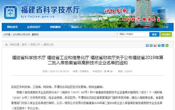 2019年12月16日,福建省科學(xué)技術(shù)廳、福建省工業(yè)和信息化廳、福建省財(cái)政廳聯(lián)合發(fā)文,公布了福建省2019年第二批入庫備案省級(jí)高新技術(shù)企業(yè)名單,福建福日電子股份有限公司入選該名單。入庫備案企業(yè)是根據(jù)其擁有核心知識(shí)產(chǎn)權(quán)情況、創(chuàng)新能力評(píng)價(jià)等4個(gè)方面滿足獎(jiǎng)補(bǔ)條件情況進(jìn)行不同檔次獎(jiǎng)補(bǔ)。