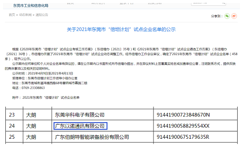 近日,東莞市倍增計(jì)劃工作領(lǐng)導(dǎo)小組辦公室發(fā)布了2021年?yáng)|莞市“倍增計(jì)劃”試點(diǎn)企業(yè)名單,福日電子二級(jí)控股子公司廣東以諾通訊有限公司入選該名單。此次認(rèn)定的“倍增計(jì)劃”試點(diǎn)企業(yè)重點(diǎn)聚焦在東莞市制造業(yè)企業(yè)、生產(chǎn)性服務(wù)業(yè)企業(yè)、軟件與信息技術(shù)服務(wù)業(yè)企業(yè)。