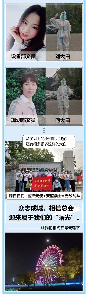 無獨(dú)有偶,源磊科技也用“微光聚愛”。從2月26日至3月22日,在其中的13個日子里,源磊科技的16名志愿者“逆行”奔赴防疫前線,配合當(dāng)?shù)赜嘘P(guān)部門開展消毒、核酸檢測等工作。無論驕陽似火,亦或刮風(fēng)下雨,這群“大白”們都堅守在志愿服務(wù)一線。正如他們所說,疫情當(dāng)前,他們從不缺席,迎接美好四月天是他們堅持的動力。