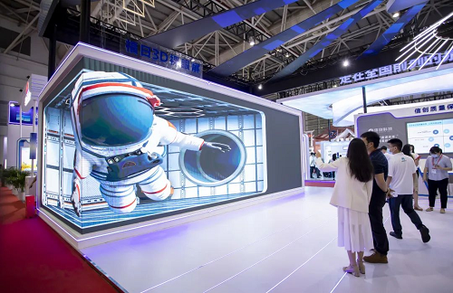 無需佩戴3D眼鏡,就能看到人物仿佛穿過屏幕來到現(xiàn)實世界,邁銳光電裸眼3D屏也引得觀展者們紛紛駐足,沉浸式享受視覺盛宴。據(jù)現(xiàn)場工作人員介紹,裸眼3D屏的原理是通過空間透視和混淆空間感知,利用人的左右眼視差錯覺制造出立體感,關(guān)鍵技術(shù)是通過虛擬3D軟件將立體畫面按照一定觀看角度在兩個不同的面呈現(xiàn)出來。通過深耕LED顯示領(lǐng)域,邁銳光電持續(xù)進行技術(shù)及產(chǎn)品創(chuàng)新,目前已運用“技術(shù)+創(chuàng)意”的裸眼3D大屏解決方案,成功助力打造了上海美羅元宇宙、成都寬窄巷子等多個城市網(wǎng)紅地標。