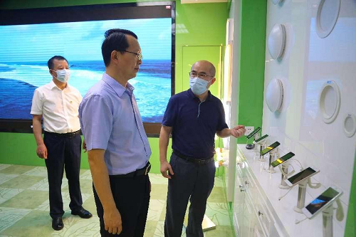 檢查前,鄭志鋒一行參觀了福日電子產(chǎn)品展示廳,詳細(xì)了解了福日電子的主營產(chǎn)品;駐足企業(yè)宣傳欄,詢問了福日電子企業(yè)文化建設(shè)和黨員先鋒示范崗作用發(fā)揮情況。