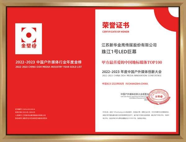 近日,“金璧獎·2023中國戶外媒體創(chuàng)新大會”以“超級媒體、超級流量、超級品牌”為主題盛大開幕,由福日電子成員企業(yè)邁銳光電匠心打造的南京“珠江1號巨幕”憑借在品牌增值、流量變現(xiàn)、媒體傳播等方面的傲人成績,成功斬獲“甲方最喜愛的中國地標(biāo)媒體TOP100”榮譽(yù)。