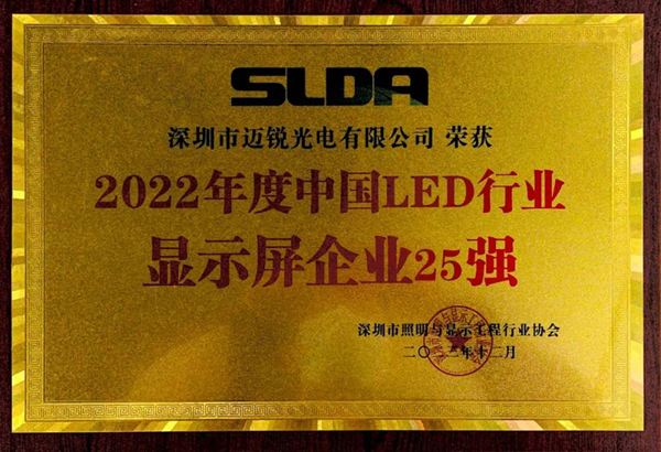 再次獲得“2022年度中國LED顯示屏行業(yè)25強(qiáng)企業(yè)”獎(jiǎng)項(xiàng),體現(xiàn)了行業(yè)對邁銳光電在過去一年在顯示科技水平以及項(xiàng)目設(shè)計(jì)方案等方面所取得成績的高度認(rèn)可,尤其是在顯示科技水平和項(xiàng)目設(shè)計(jì)方案方面,贏得了業(yè)界的廣泛贊譽(yù)。
