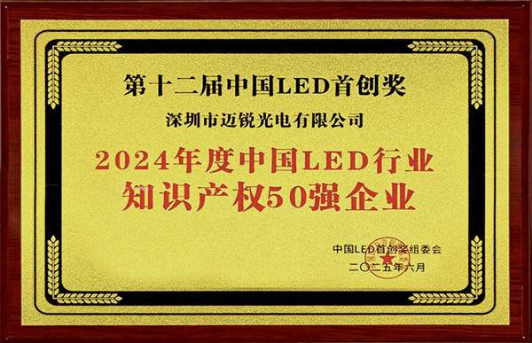2025年6月,在第十二屆中國LED首創(chuàng)獎頒獎典禮上,福日電子成員企業(yè)邁銳光電成功入選“2024年度中國LED行業(yè)知識產(chǎn)權50強”,以突出技術創(chuàng)新力與知識產(chǎn)權管理能力贏得行業(yè)高度認可。